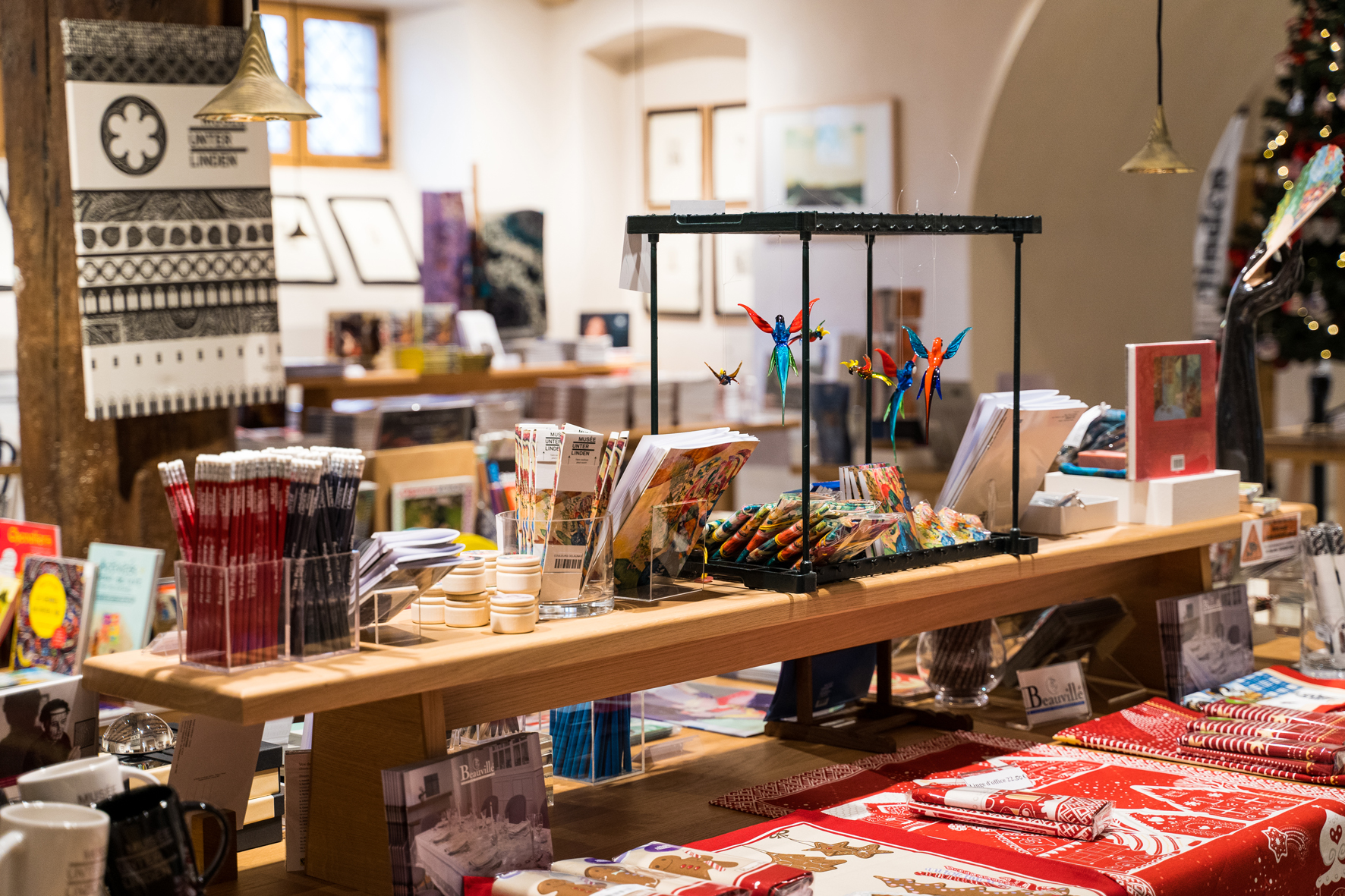 La boutique du Musée Unterlinden offre une belle sélection d’objets en lien avec les collections, papeterie, librairie d’art, art de la table, jeunesse, modes et bijoux, dont des créations uniques d’artistes de Colmar et de la région.
